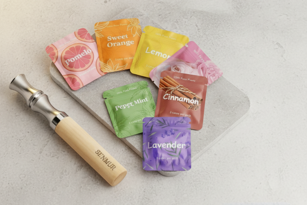 • Includes the Senmur Natural Wooden Inhaler paired with your selected Core Pack(s) — made from natural fruit and botanical blends for a clean, refreshing inhale